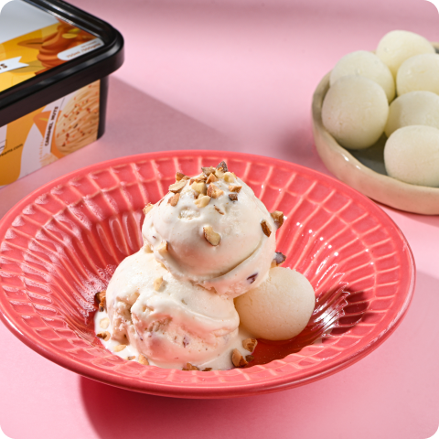 CARAMEL NUTS ICE CREAM WITH RASGULLA